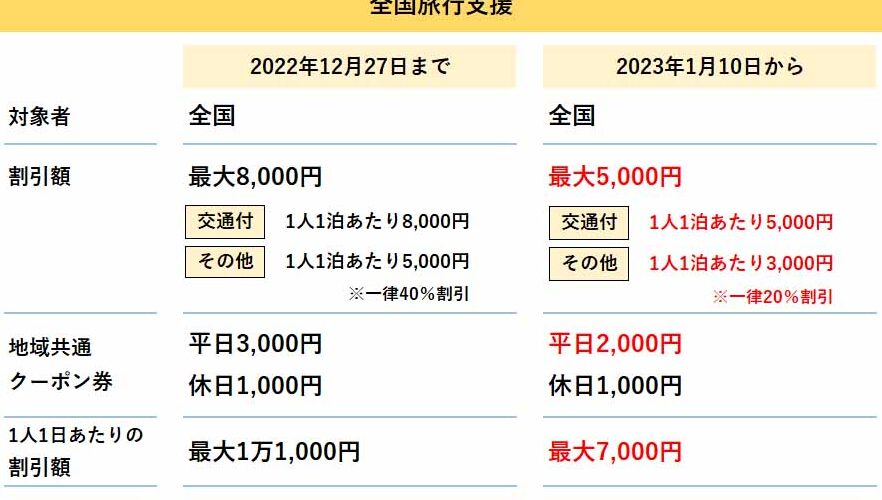 このように、それぞれの地域によって異なる価格設定やサービス内容がありますので、旅行計画時にはこれらを考慮しながら自分たちに最適な宿泊先を選ぶことが大切です。また、「全国旅行支援 一泊いくら以上」の条件を十分理解し、賢く利用することで、お得感と満足度の高い旅になるでしょう。