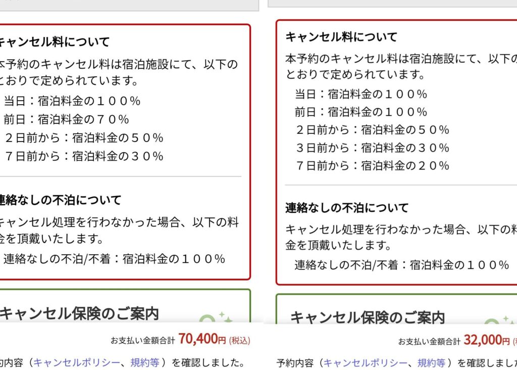 予約の種類によるキャンセルポリシーの違い